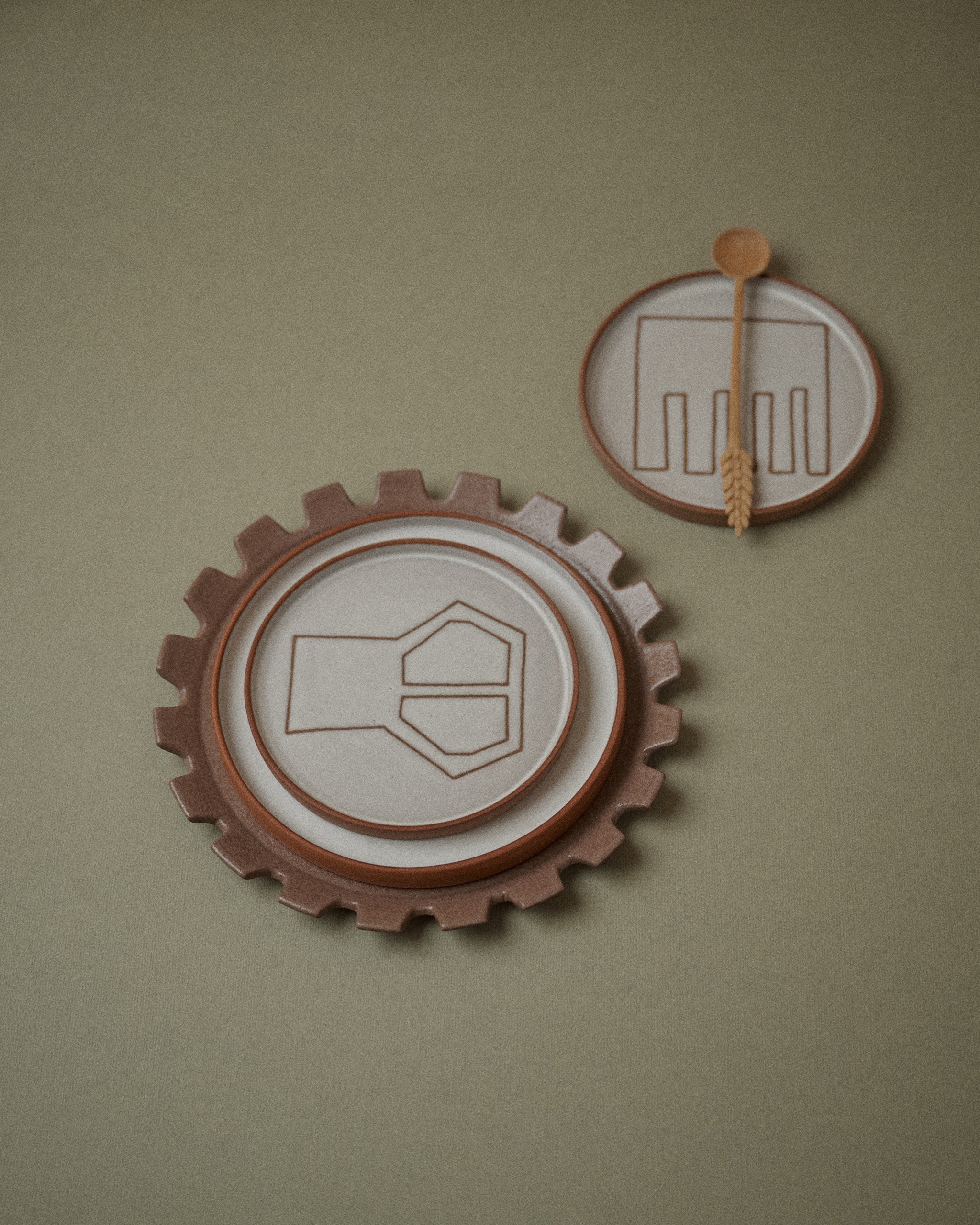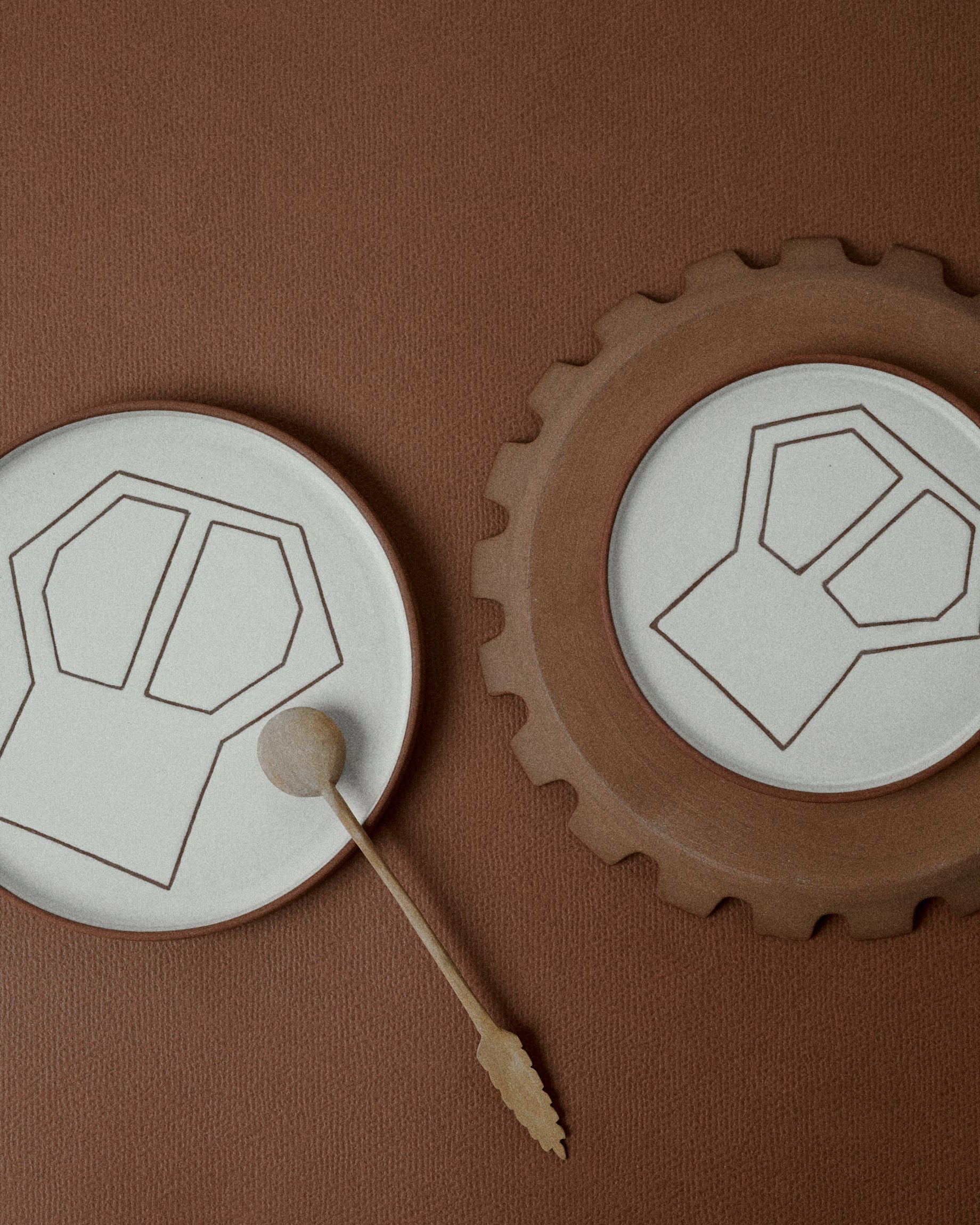 Hand-painted in clay, each tableware piece presents subtle variations that speak of the hand and the material. A quiet dialogue between function, texture, and craftsmanship.