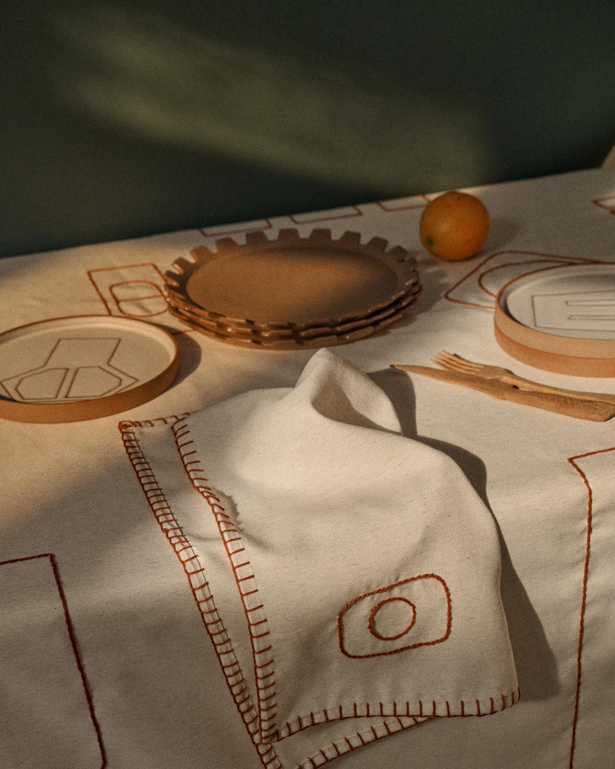 Hand-embroidered napkins, designed by Puna. An everyday gesture that celebrates material, craftsmanship, and the ritual of the table.